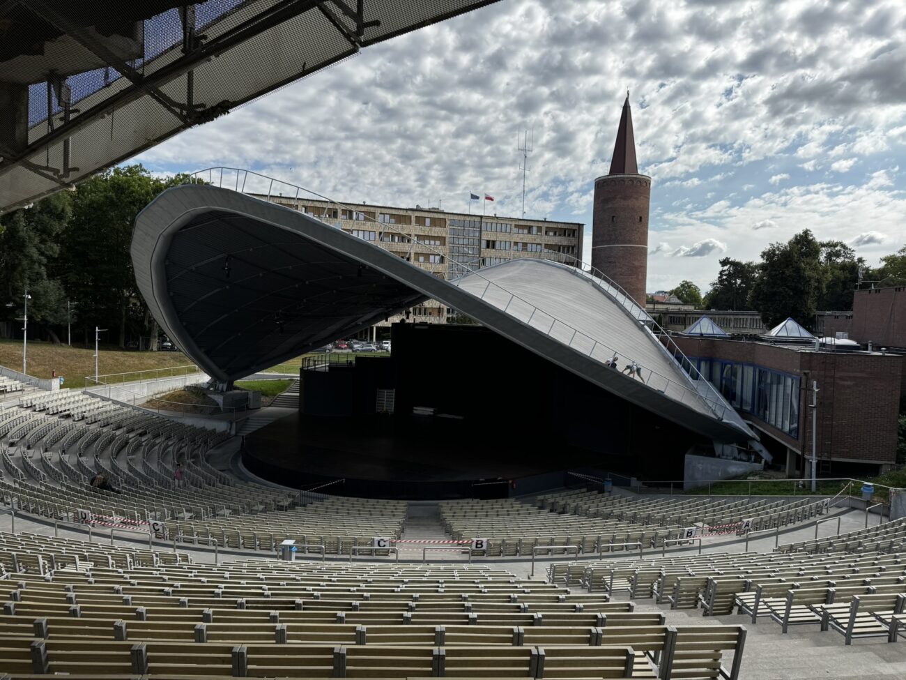 Schon beim Betreten des modernen Gebäudes, das direkt unter dem berühmten Amphitheater liegt (hier findet jedes Jahr das Festival des Polnischen Liedes mit nationale Stars statt), begrüßen bunte Neonlichter mit Songtiteln wie „Zielono mi“ oder „Nie zadzieraj nosa“ die Gäste.