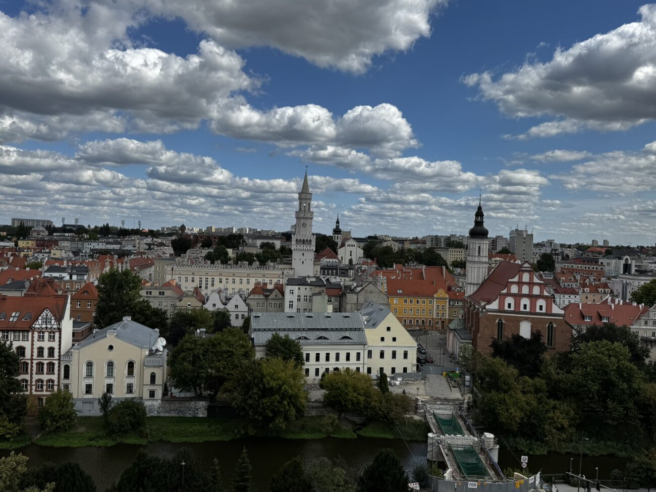 Heute führt eine Wendeltreppe mit 162 Stufen hinauf zur Aussichtsplattform. Von dort aus hat man einen grandiosen Blick über die Altstadt und die Oder. Pastellfarbene Bürgerhäuser, der historische Marktplatz (Rynek) und die imposante Kathedrale der Erhöhung des Heiligen Kreuzes prägen das Stadtbild.