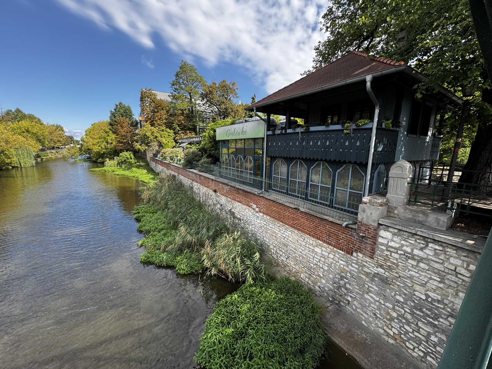 Entlang des Mühlgrabens kann man eine etwa 1,3 km lange Uferpromenade, gesäumt von Brücken und Gärten entlang schlendern. Am Ufer finden sich viele Cafés und Restaurants mit– ideal für einen abendlichen Drink mit Blick auf die Spiegelungen im Wasser. Tipp: Das Pfannkuchenhaus Grabówka liegt inmitten des Parks und direkt am Kanal.
